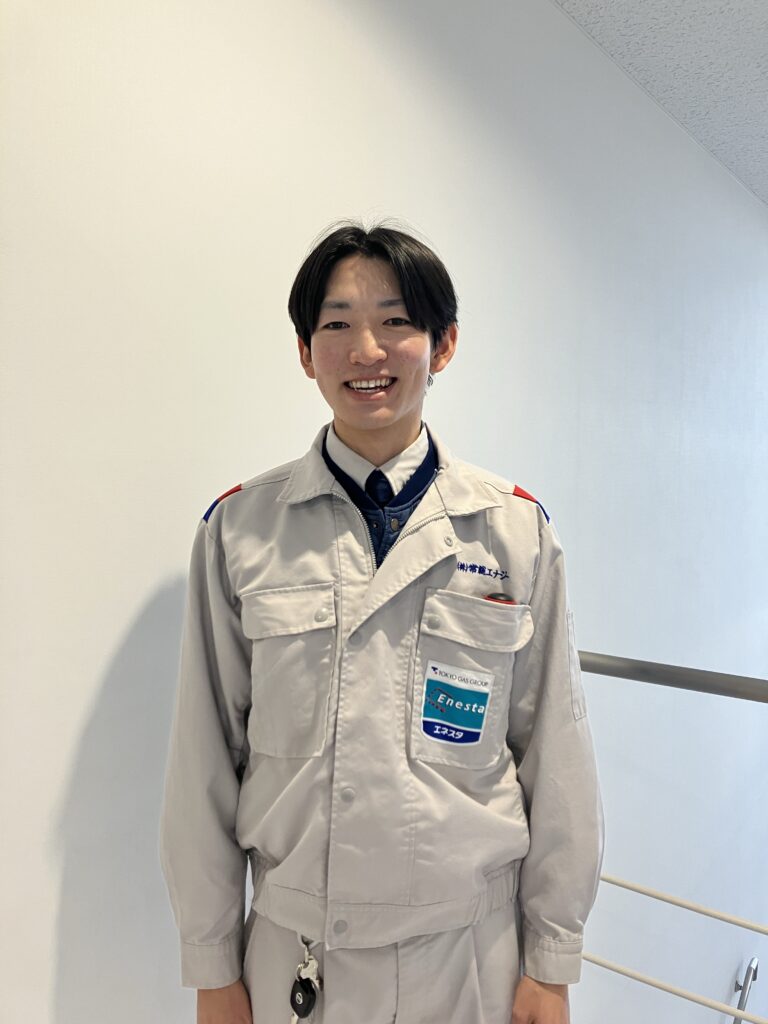 前職では空港の警備業務に携わっていましたが、「もっと直接、人と関わる仕事がしたい!」という思いから転職を決意しました。人と接することが好きな私にとって、生活に欠かせない『ガス』を通じてお客様の快適で安心な暮らしを支える今の仕事は、大きなやりがいがあります。お客様の笑顔に貢献できるこの仕事に魅力を感じ、志望しました。